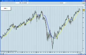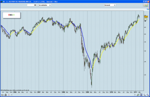 Te pongo ahora algunos ejemplos de medias móviles semanales que no tienen por qué ser necesariamente la WMA30 (media ponderada de 30 semanas). Verás que hay otras medias que se ajustan mejor. Los gráficos son como los pies, cada uno calza una talla distinta ¿por qué empeñarnos en meterlos a todos dentro del mismo zapato?