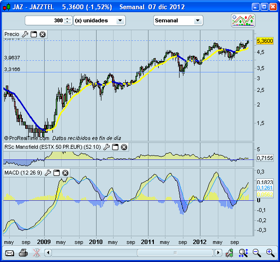 ¿Jazztel? Con un stop loss en 5.12 podríamos aspirar a llegar hasta 6.4€ ¿por qué no?