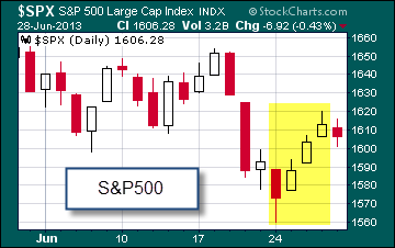 De todos modos, hay algo que no me huele bien: Este valor tan sobre-extendido, con una enorme tensión precio-valor que se observa en el gráfico semanal (y diario) no ha sido capaz de subir estos últimos días con el S&P500 subiendo:
