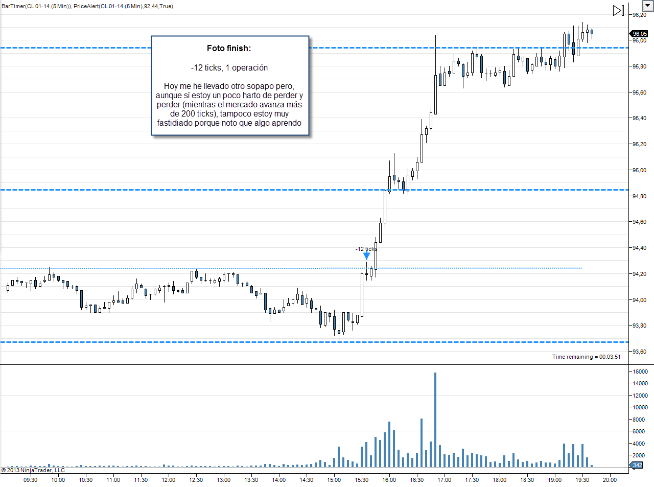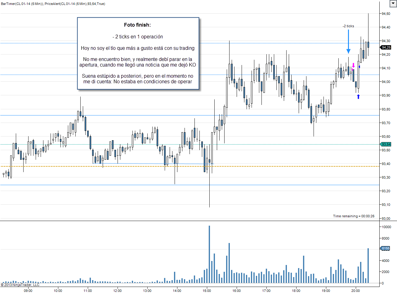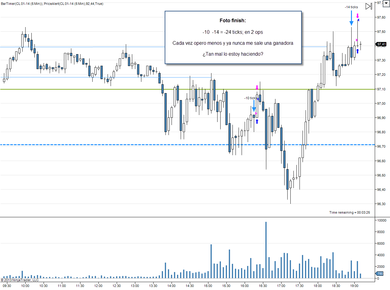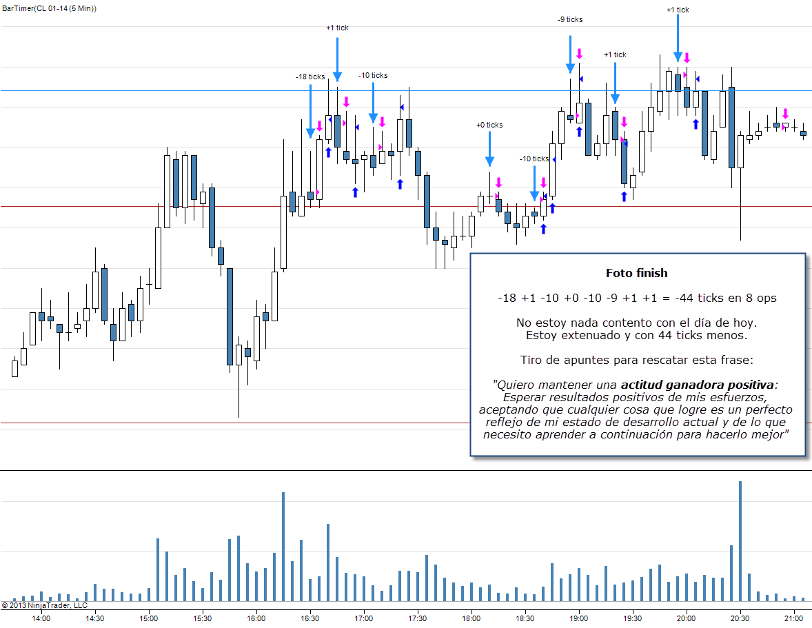Llevo unos días operando en el crudo en gráficos de 5 minutos que no doy pie con bola. Ya sabes que estoy aprendiendo a operar intradía con futuros, pero aunque esté aprendiendo quiero hacerlo bien.
