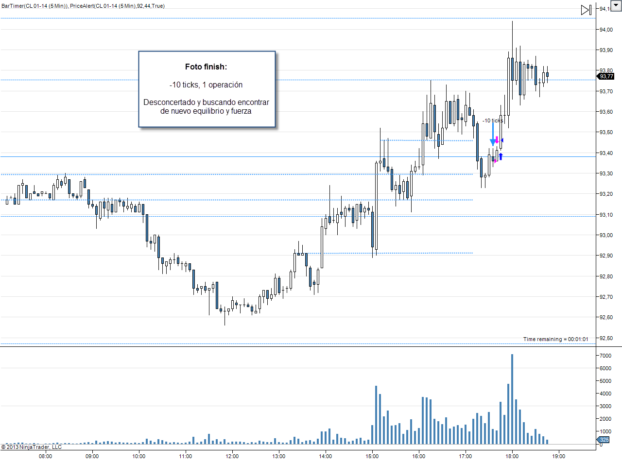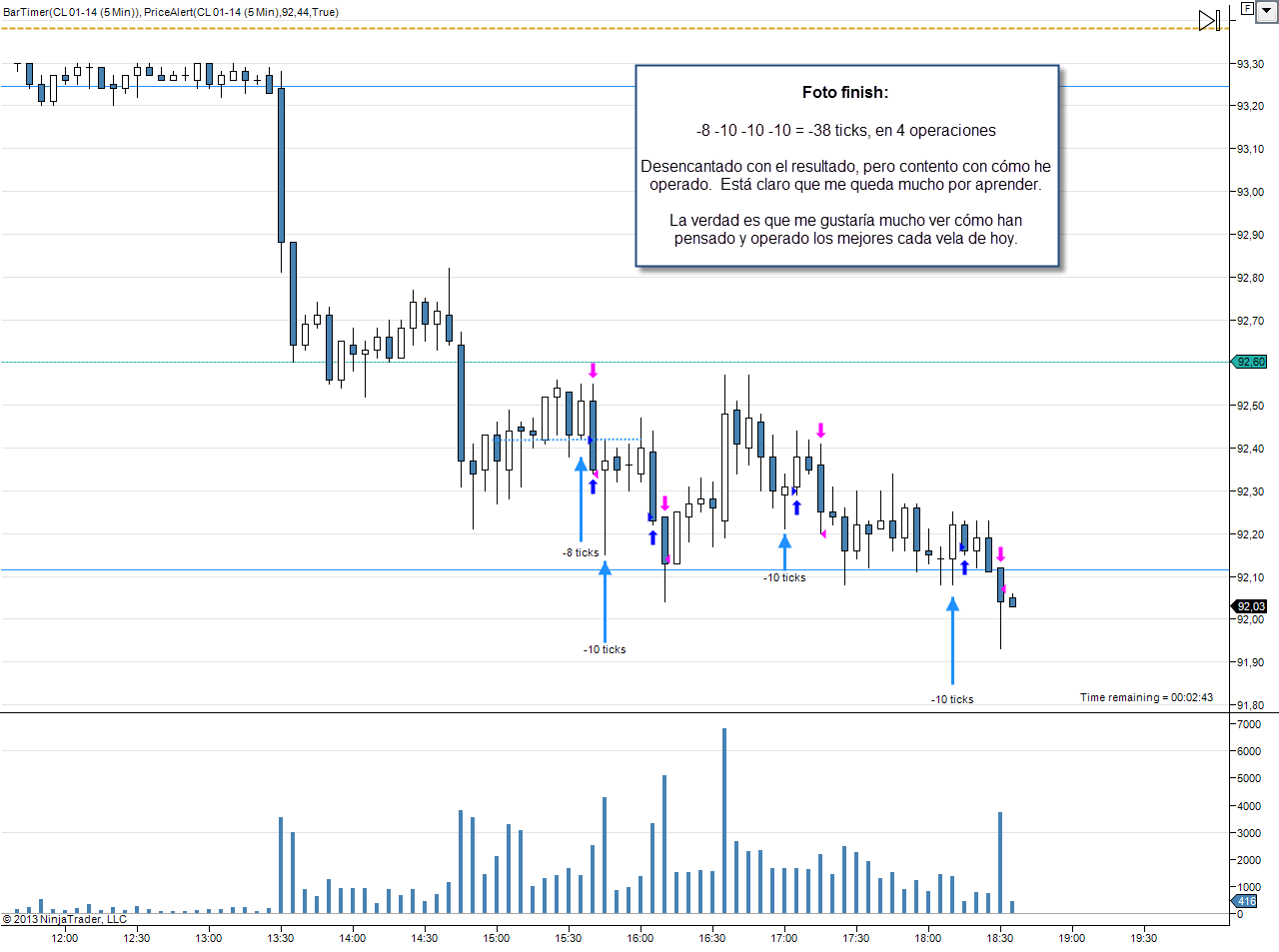 Aquí te pongo algunas de mis «foto finish» de cada día. Es la última anotación sobre el gráfico, con el resumen de la sesión: