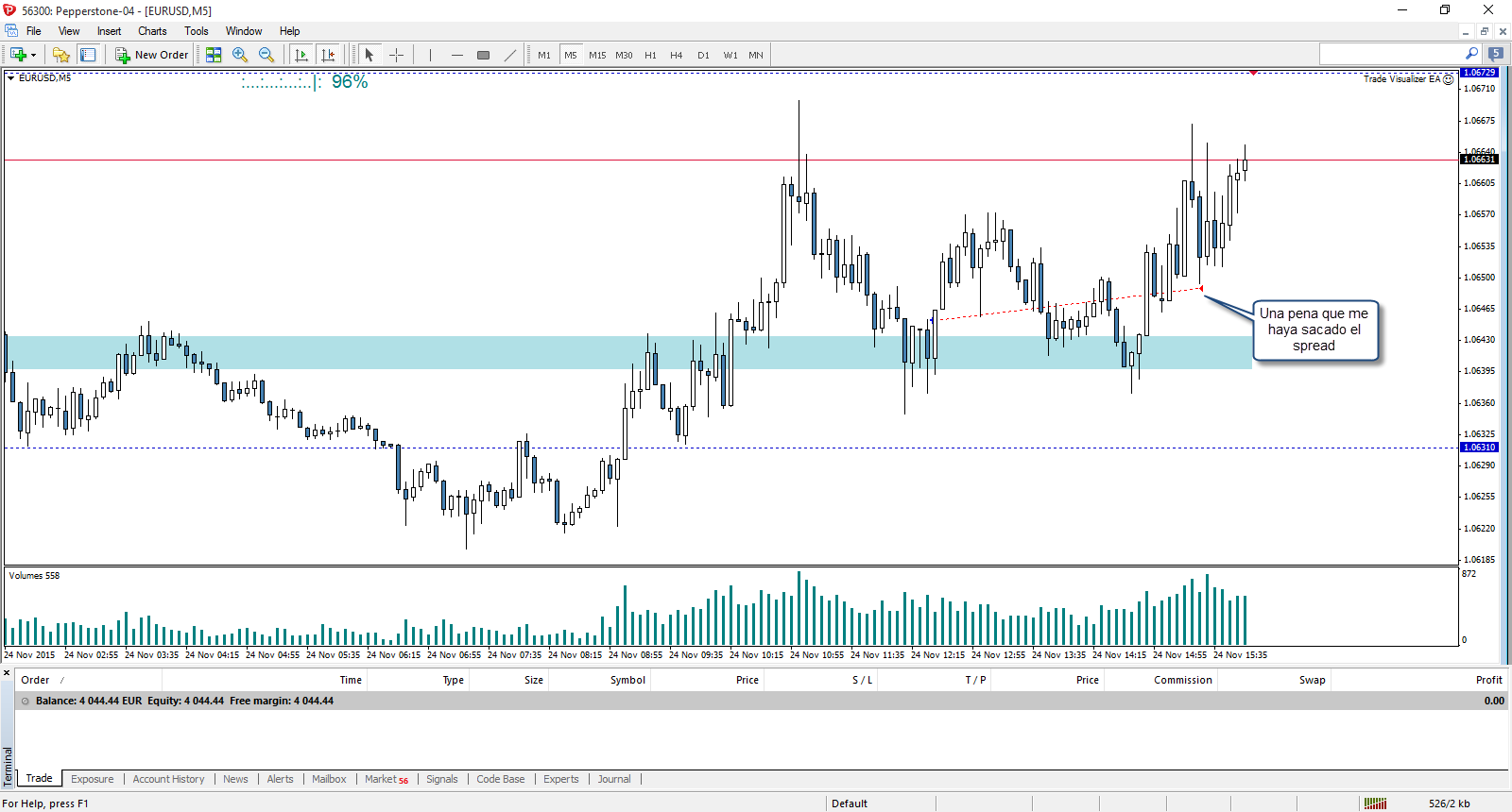 En el tamaño de cuenta que me muevo (estoy operando una cuenta real de 4000€) con tamaños de posición muy moderados, ganar 80€ es ganar mucho, ganar 30€ es ganar poco y perder 25€ es lo normal. Pues hubo muchas en las que ganaba 14€, 8€, etc. A eso me refiero con breakeven o casi breakeven.