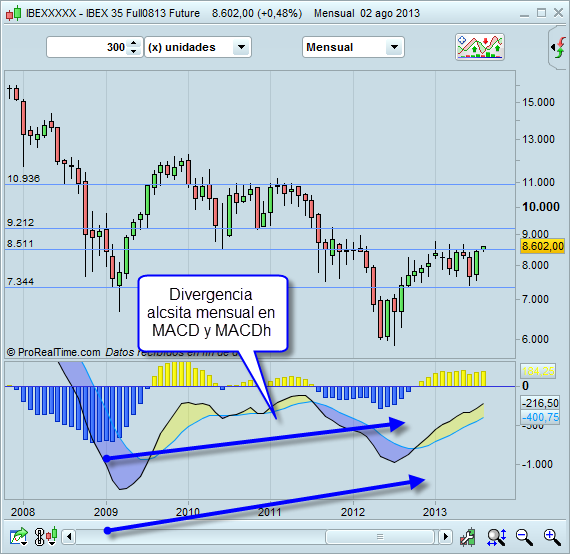 1. Uxío absolutamente de acuerdo, como bien has dicho muchas veces, las divergencias dobles en MACDh y MACD son muy potentes y si son en mensual, más.