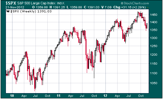 Aquí tienes los gráficos del S&P500. Primero el semanal y luego el diario, para que los mires bien: