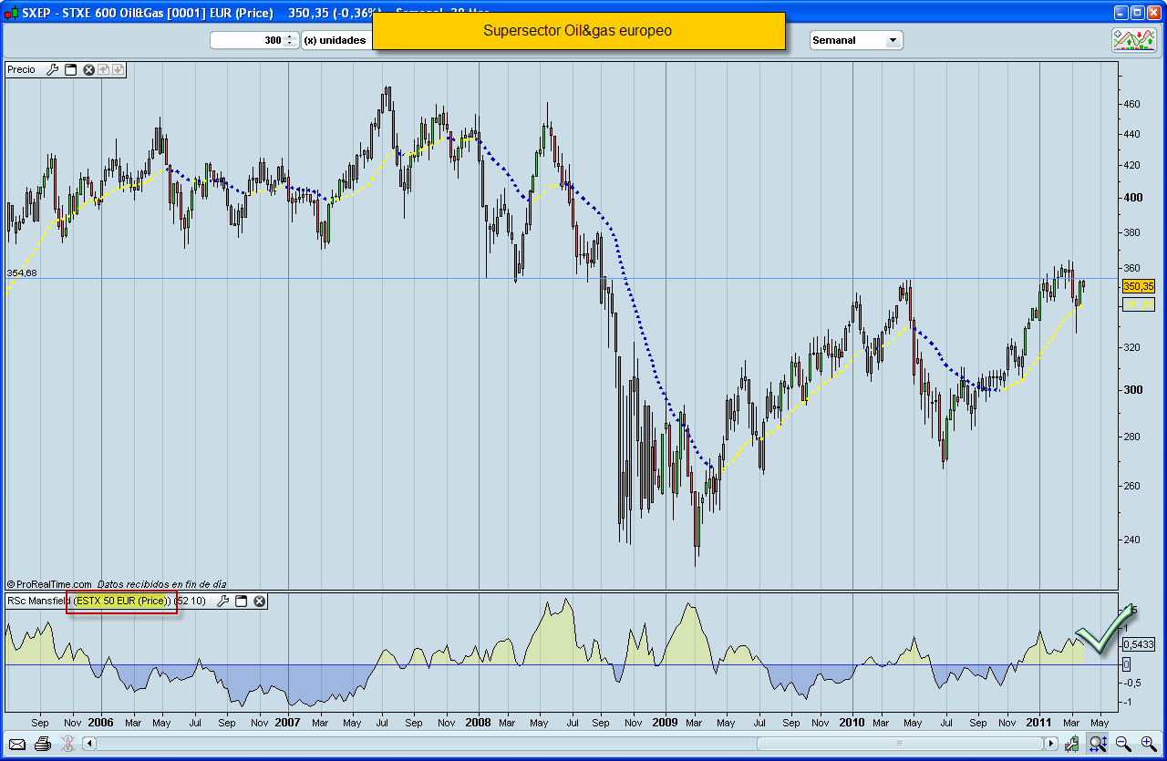 Haciendo un repaso de los supersectores europeos, nos encontramos con que Oil & gas (SXEP) tiene buena pinta: