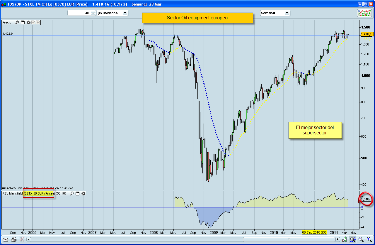 De estos tres, el que mejor aspecto y mayor fortaleza relativa tiene es el de Oil & gas equipment, services & distribution (T0570P):
